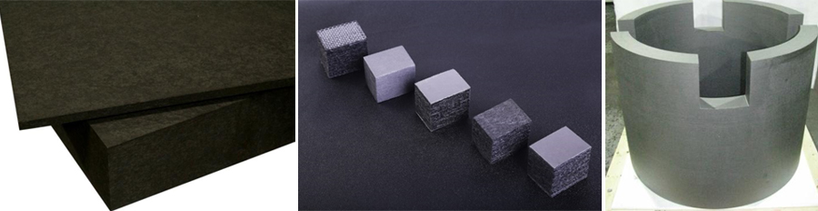 固化石墨氈也叫硬氈,根據硬氈中纖維長度的不同又分為長纖硬氈和短纖硬氈。長纖硬氈是將軟氈含浸樹脂后進行疊層成型固化、石墨化后,形成具有一定形狀和自持性的石墨氈。短纖硬氈是將碳纖維打碎后加入粘結劑,再成型固化、石墨化處理而成。硬氈的密度一般比軟氈大,另外可以進行各種形式的表面處理,如貼石墨紙、貼炭布、貼炭/炭和涂層等。同時,根據炭纖維的原料種類不同,硬氈又可以分為瀝青基硬氈、聚丙烯腈基硬氈、黏膠基硬氈等。
